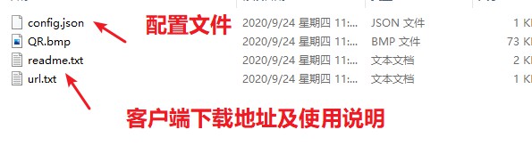 部署完后,会自动弹出帐号配置信息,并且在文件夹中也会自动生成相关配置文件及客户端下载地址