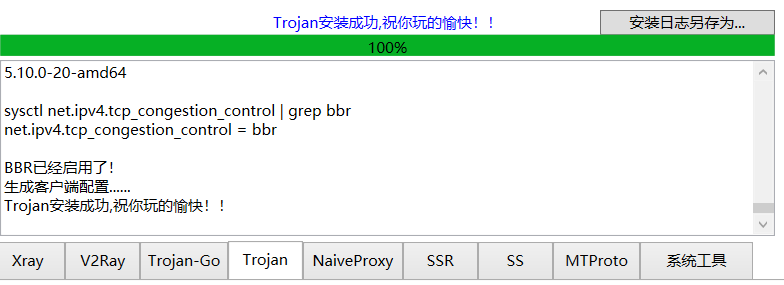 最后点击trojan一键安装